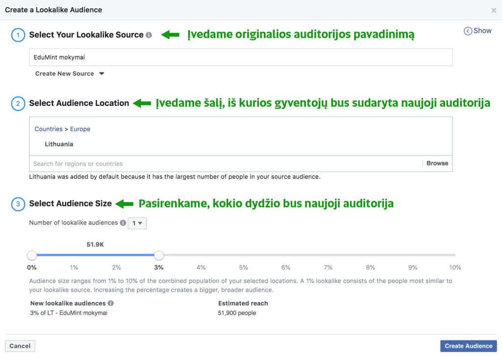 Trumpa instrukcija, kaip patiems sukurti Lookalike auditoriją: